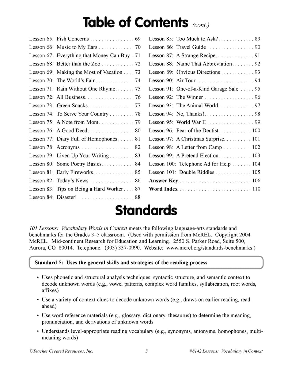 Build stronger vocabulary and language skills with 101 Lessons: Vocabulary Words in Context. This standards-based resource shows students how vocabulary words used in context enhance both spoken language and writing. By practicing with words in meaningful passages, students learn how to use them accurately and effectively.