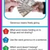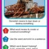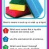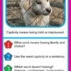 Each featuring a vibrant image, advanced vocabulary word, and four language-based challenges