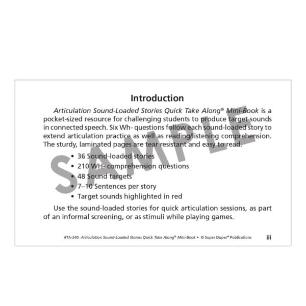 The Articulation Sound-Loaded Stories Quick Take Along ensures you’ll never be without engaging materials to target articulation and comprehension—anytime, anywhere!