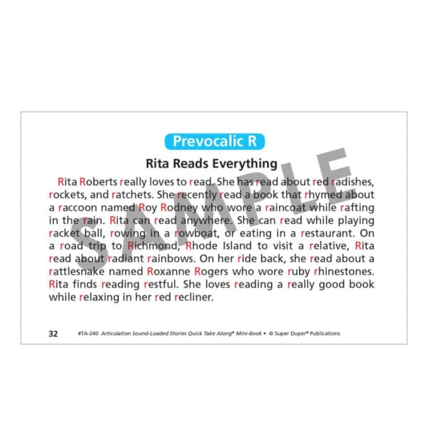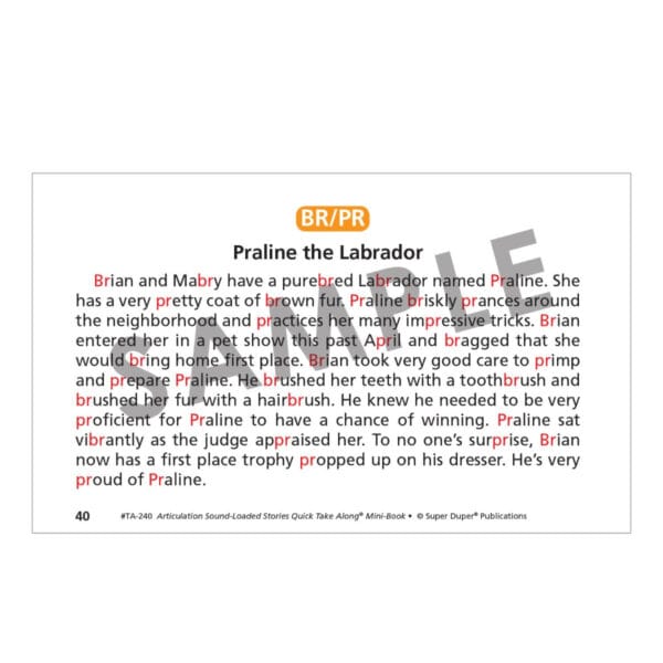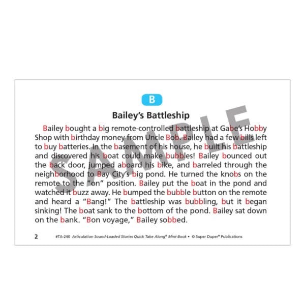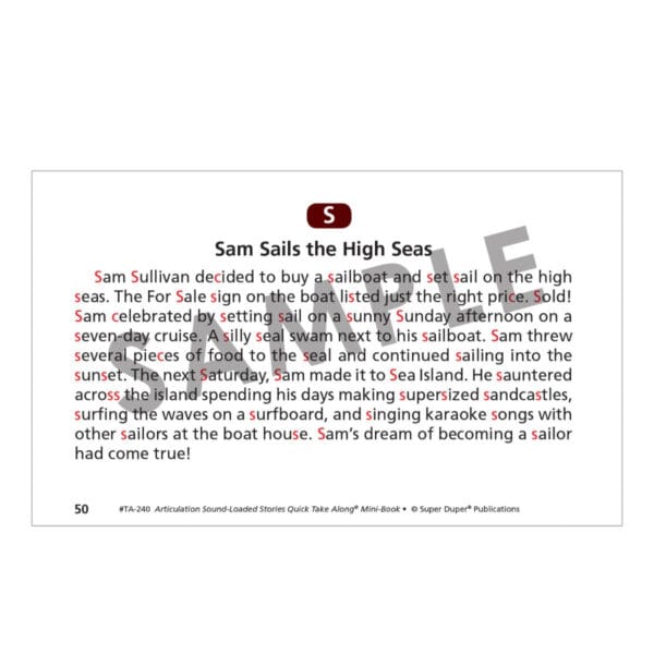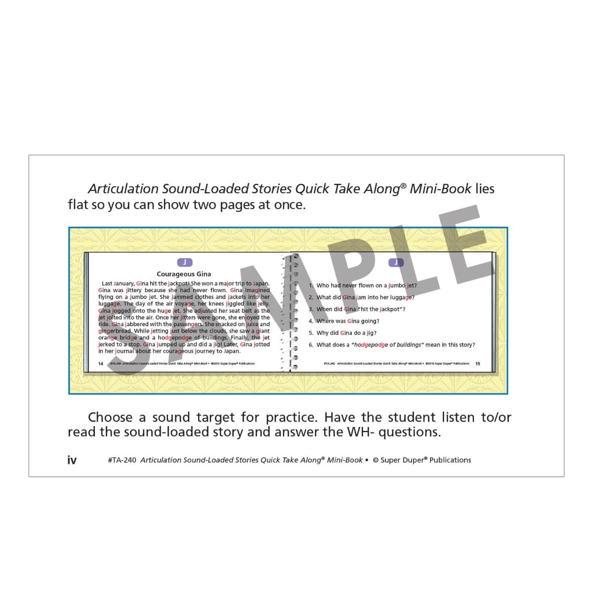 The Articulation Sound-Loaded Stories Quick Take Along is your go-to resource for articulation practice combined with reading and listening comprehension. Designed for busy speech-language pathologists, this compact, pocket-sized book makes it easy to move from setting to setting with sound-loaded stories that are engaging and easy to read.