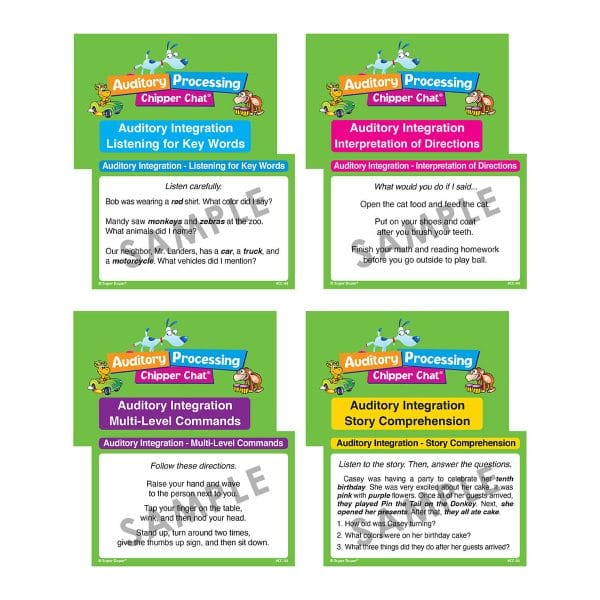 Make learning auditory processing skills a fun and rewarding experience with Auditory Processing Chipper Chat. Whether in the classroom, therapy sessions, or at home, this game is a proven favorite for building comprehension and engagement!