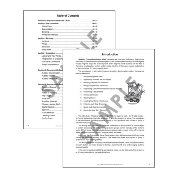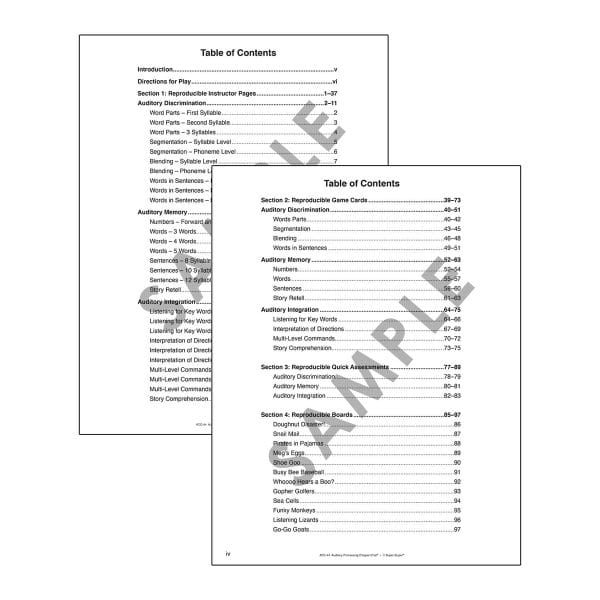 The activity book is designed to support students at various stages of auditory processing development. Quick assessments make it easy to identify emerging skills, while reproducible game boards and card designs allow for additional practice at home or in group settings.