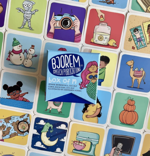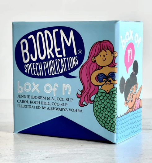 Refresh your speech therapy materials with the Bjorem Speech Box of M, a meticulously designed set of 40 cards aimed at enhancing the mastery of /m/ in initial, medial, and final positions. Ideal for speech-language pathologists, educators, and parents, this box is a treasure trove of engaging, functional targets complemented by inclusive and diverse artwork. Great for kids 3 and up!
