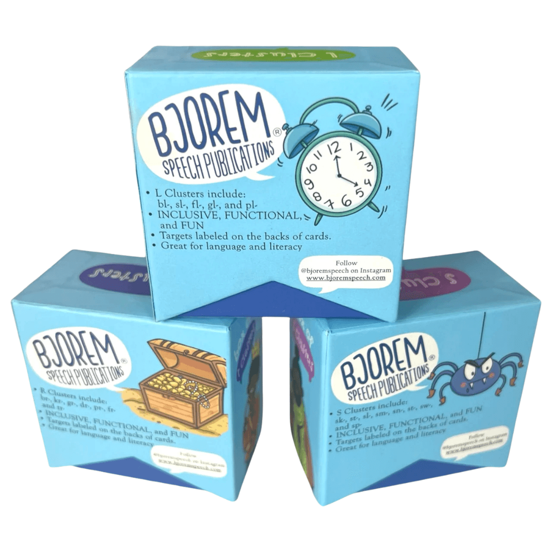 Elevate your speech therapy resources with the Bjorem Speech Box of S, R, and L Clusters Bundle, a meticulously curated set specifically designed to target the complex and crucial /s/, /ɹ/, and /l/ clusters. Ideal for speech-language pathologists, educators, and parents, this bundle is essential for addressing the articulation challenges associated with these consonant clusters in initial word positions.