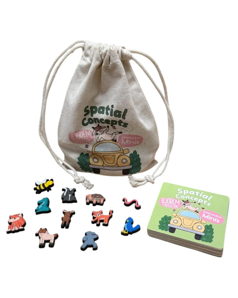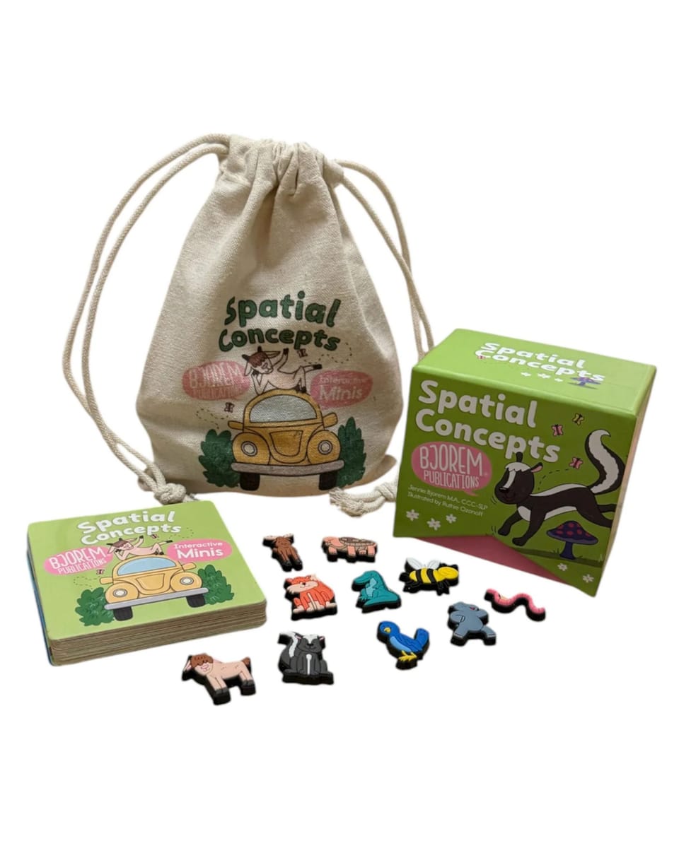 Make spatial language click with a powerful pairing of hands-on learning and meaningful context. The Bjorem Speech® Spatial Concepts Bundle combines the Spatial Concepts Deck with the Spatial Concept Interactive Bjorem Minis —giving therapists, educators, and families everything they need to teach where things are through play, movement, and visual scenes.