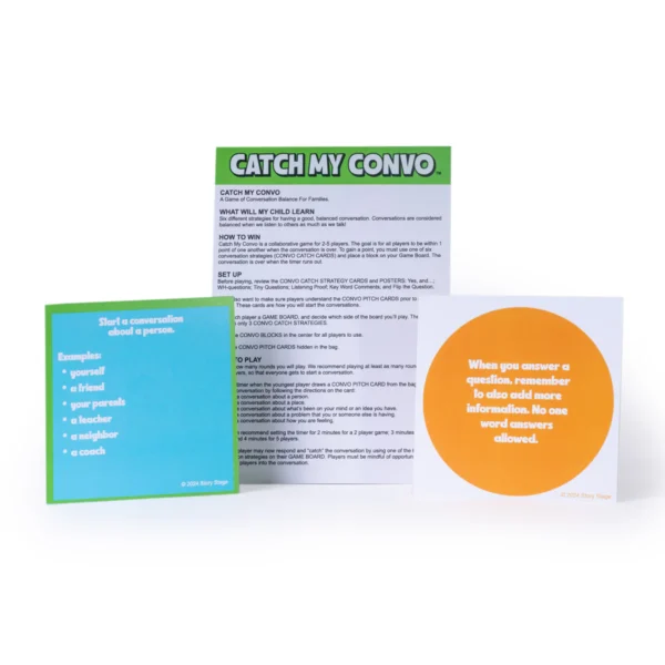 Catch My Convo is a game and teaching tool, where building a real conversation means everyone wins! This collaborative game teaches 6 research-based strategies for a balanced conversation: