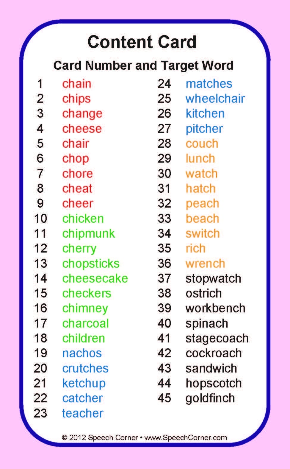 ✔️ 45 large-format playing cards with CH target words and colorful photographs