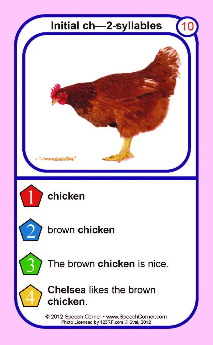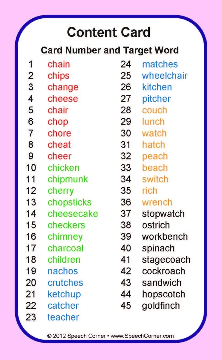 Fluency in Longer Utterances – Practicing CH in phrases, sentences, and sound-loaded sentences.