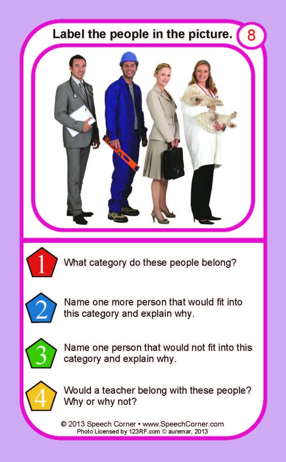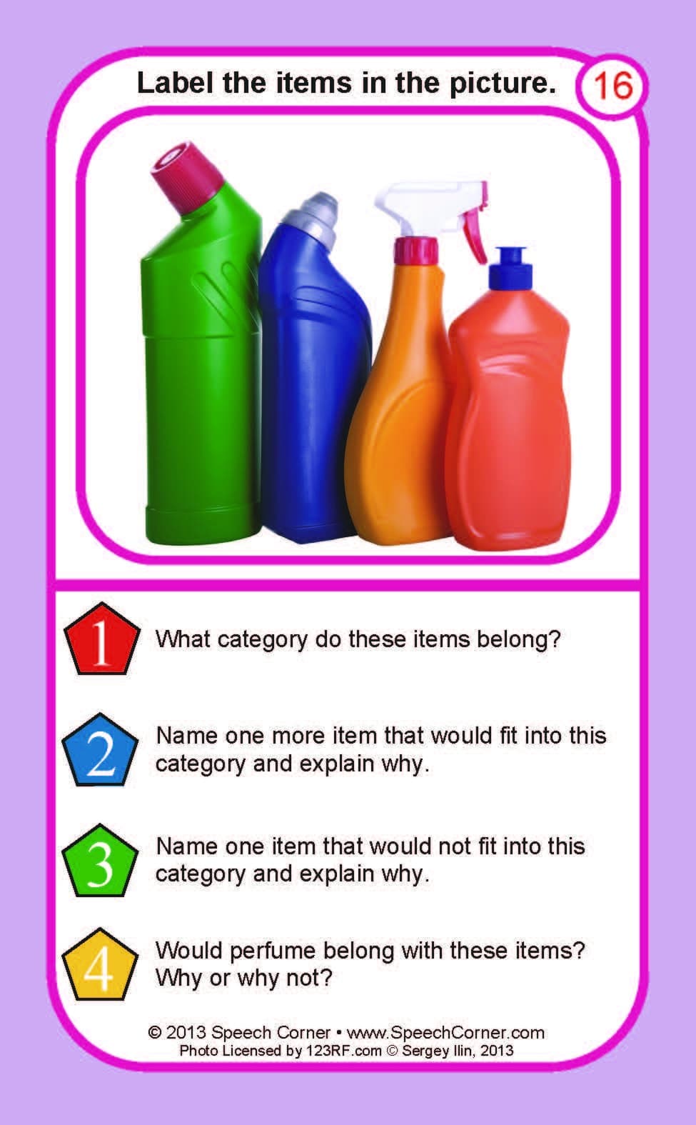 Each colorful 3″ x 5″ card features a photograph and four categorization-based prompts to encourage detailed, thoughtful responses.