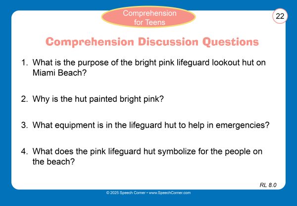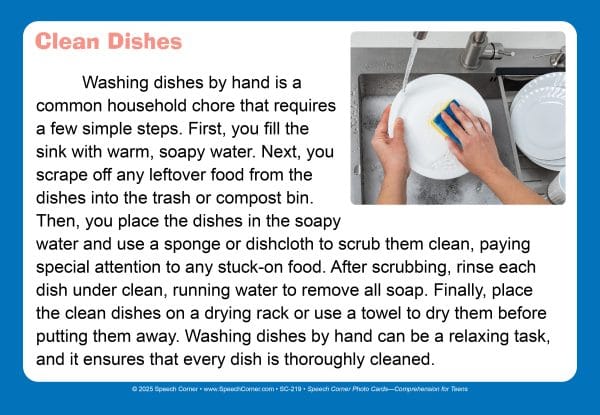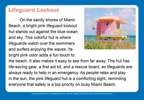The Speech Corner Photo Cards—Comprehension for Teens is a powerful resource designed to help speech-language pathologists refine the comprehension skills of preteens, teens, and adults. These cards target difficulties in auditory and reading comprehension that often accompany language impairments, offering multiple opportunities to strengthen understanding and answering skills.