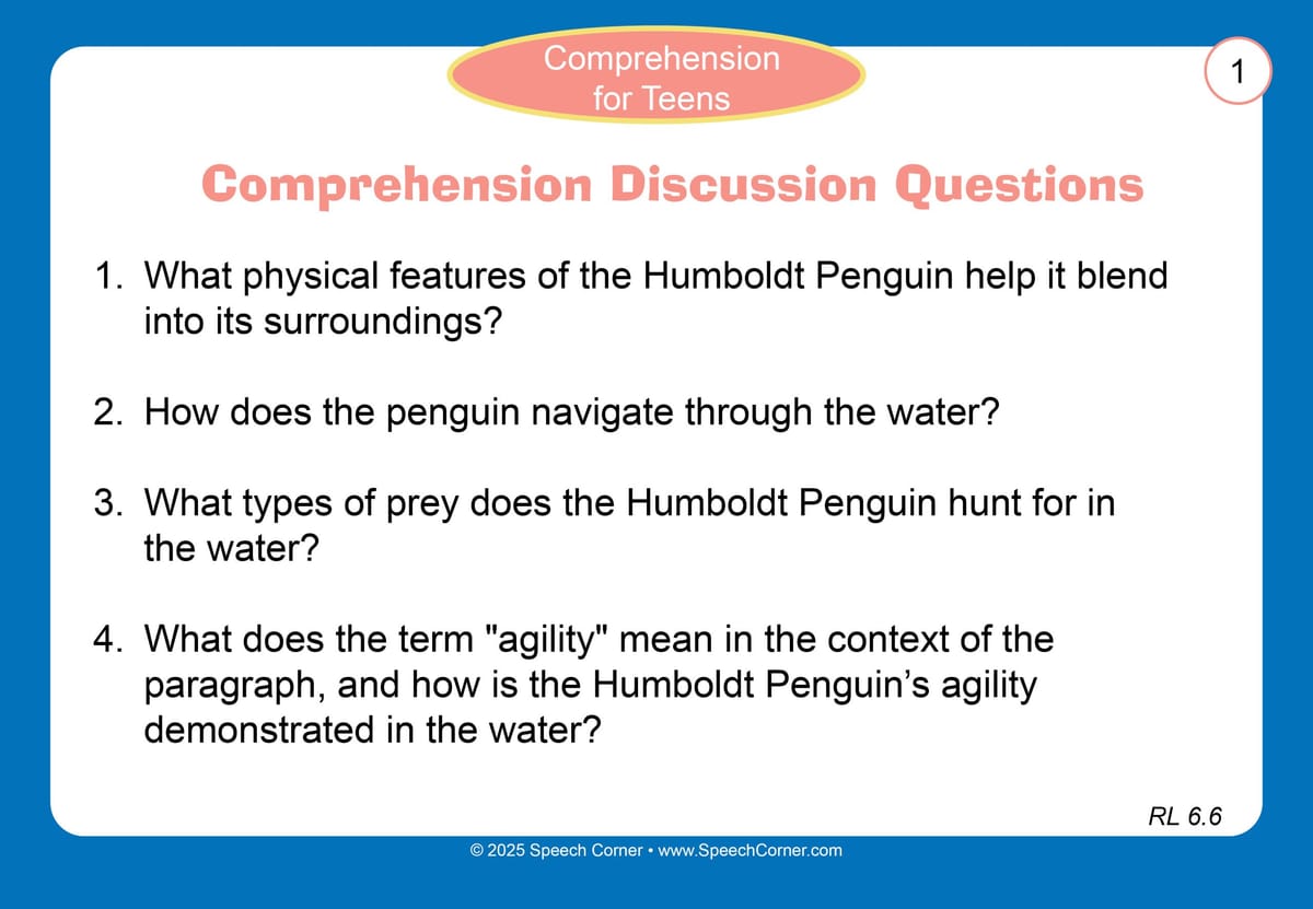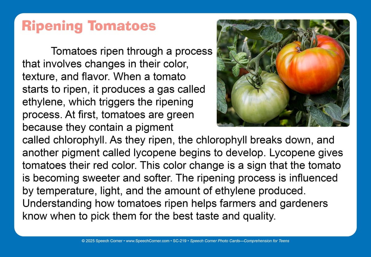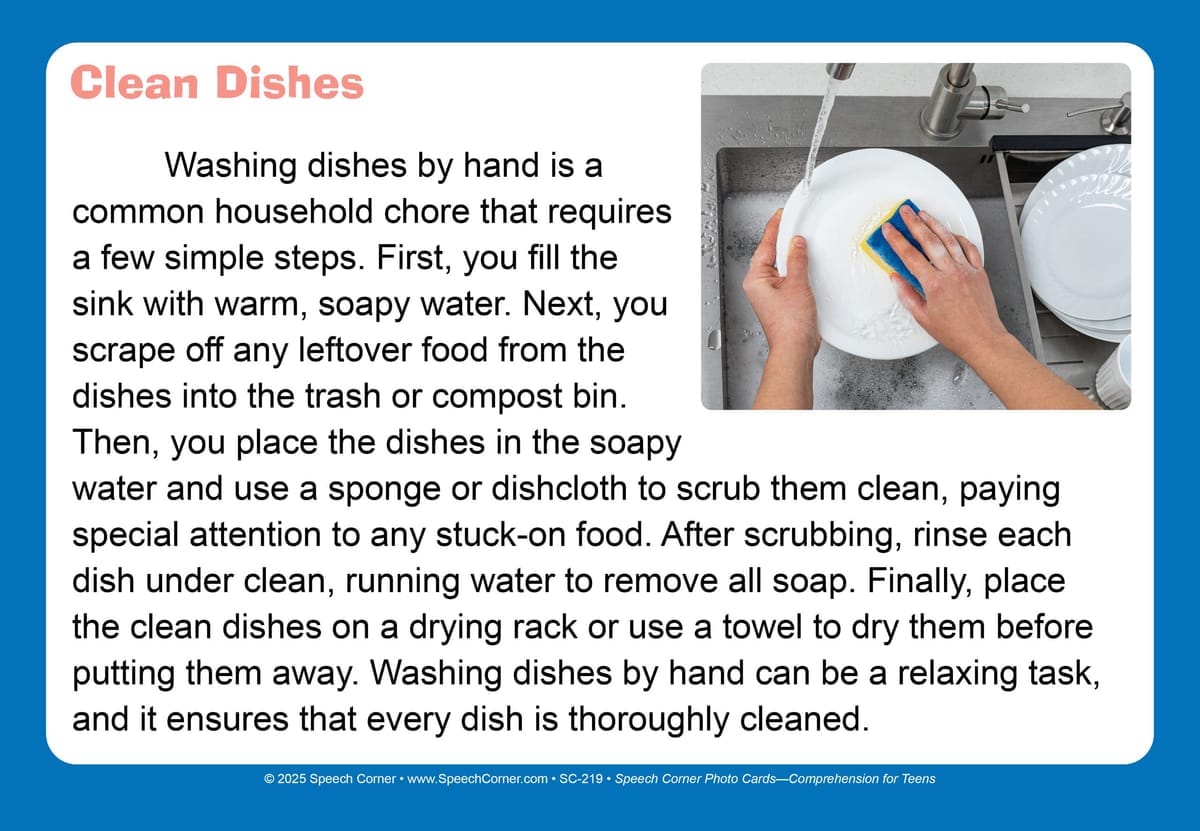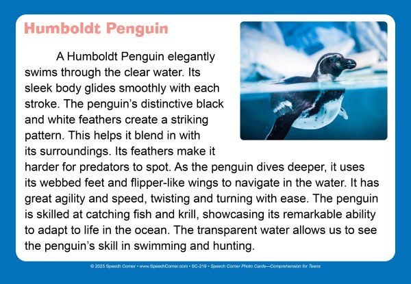 Empower your students with the tools they need to excel in auditory and reading comprehension. With Speech Corner Photo Cards—Comprehension for Teens, you’ll make every therapy session productive, engaging, and impactful!