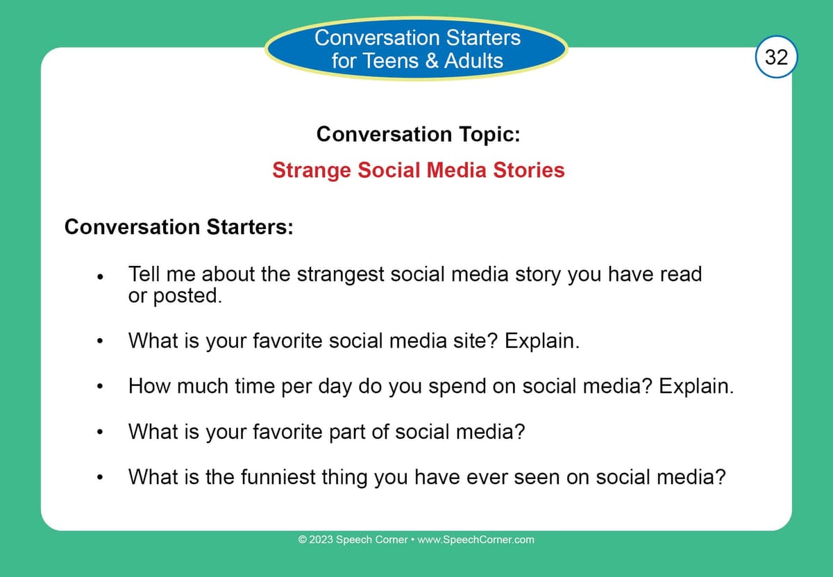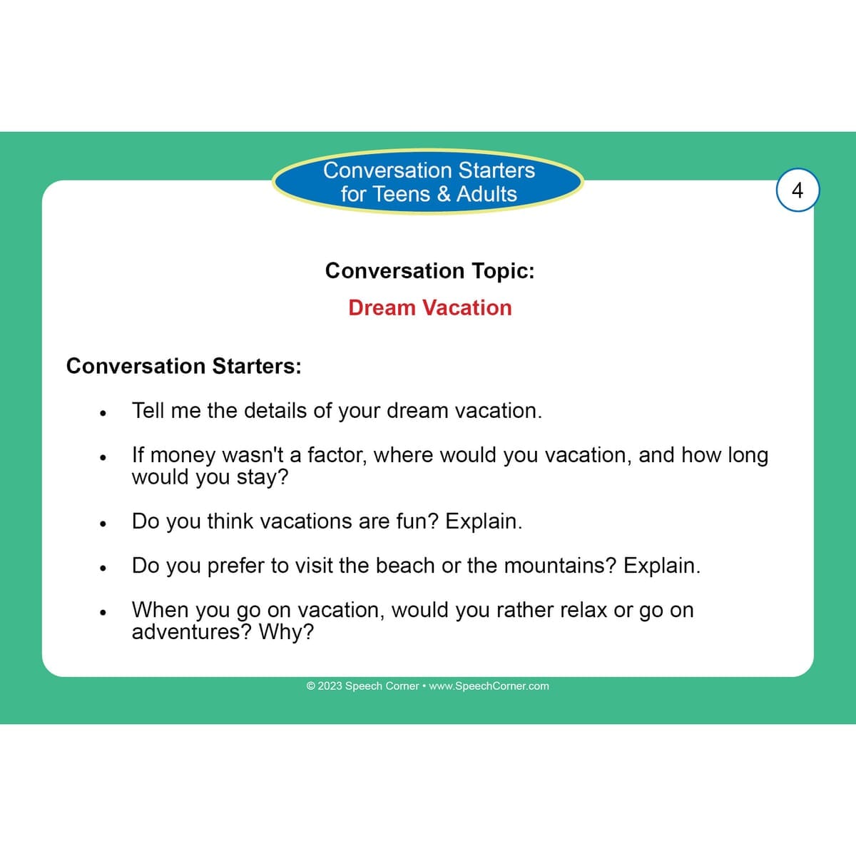 Conversation Starters for Teens and Adults – Speech Corner Photo Cards
