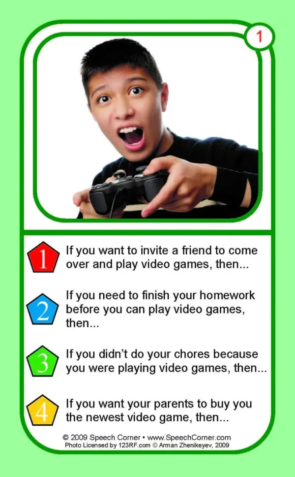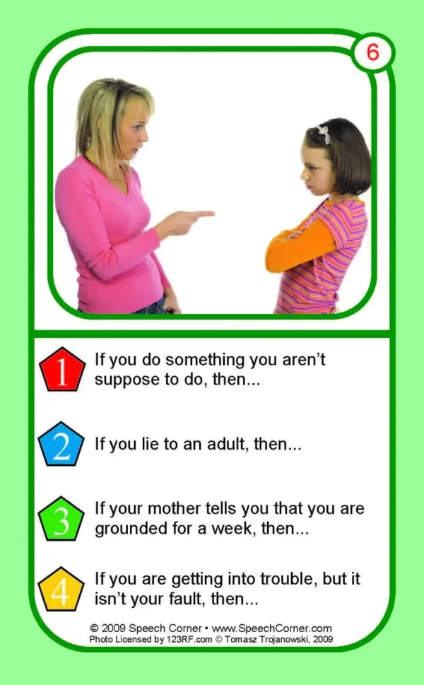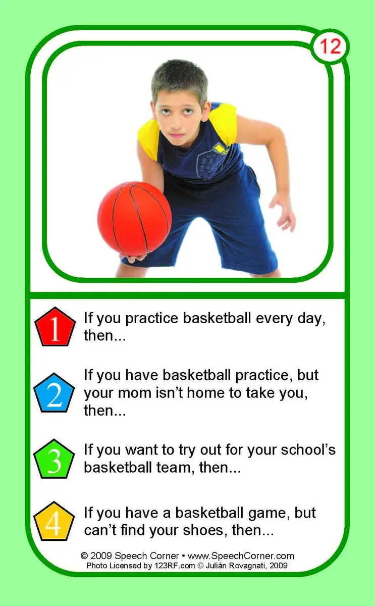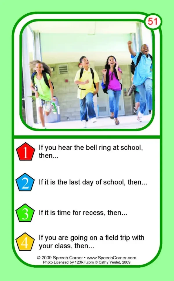 Complete the Statement: Read aloud the “If…” portion at the top of the card, and have the student finish it with a logical “Then…” response.