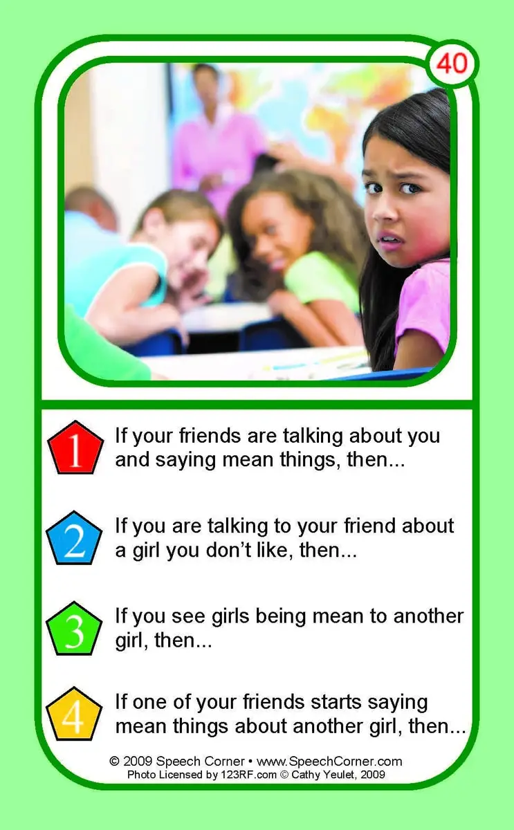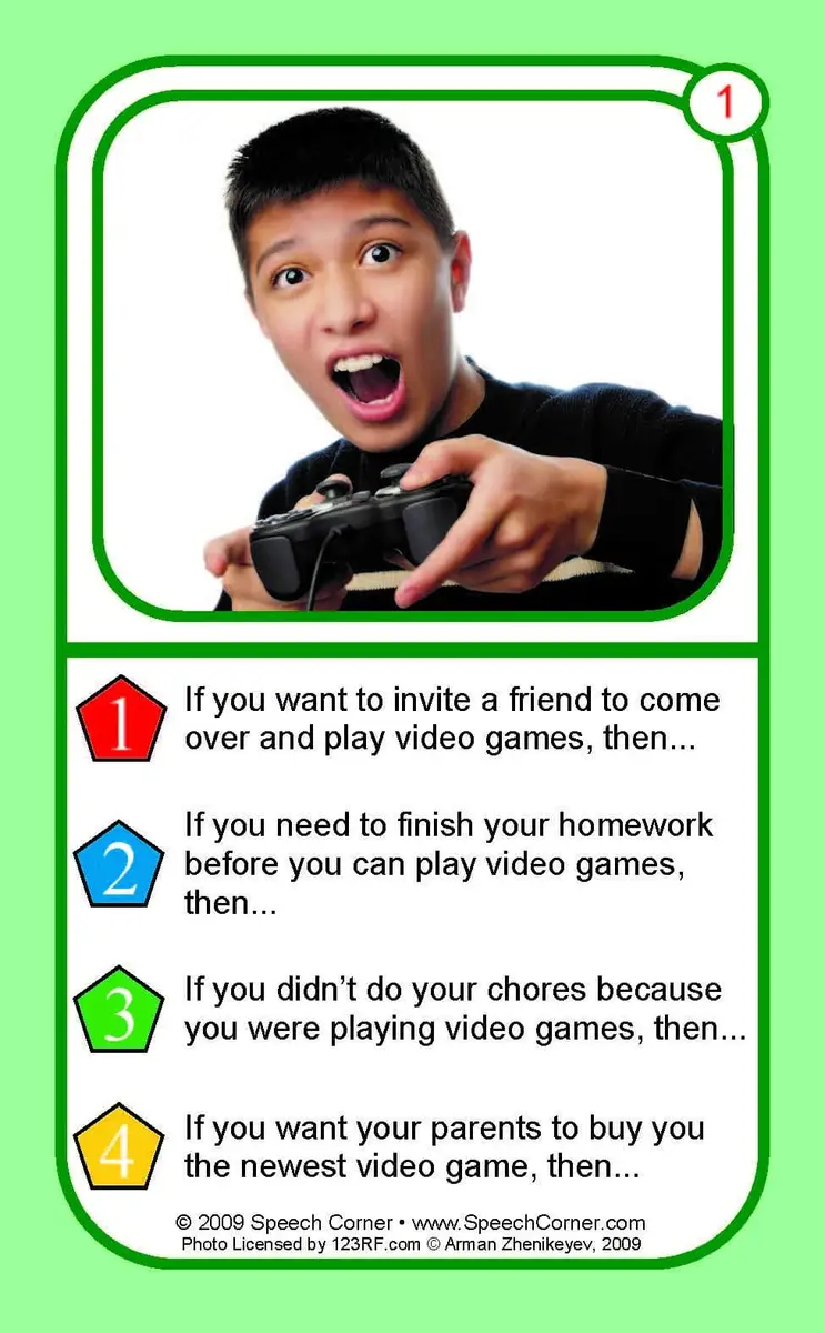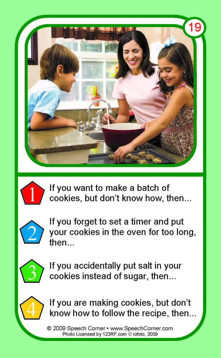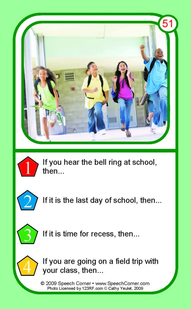 3. Complete the Statement: Read aloud the “If…” portion at the top of the card, and have the student finish it with a logical “Then…” response.