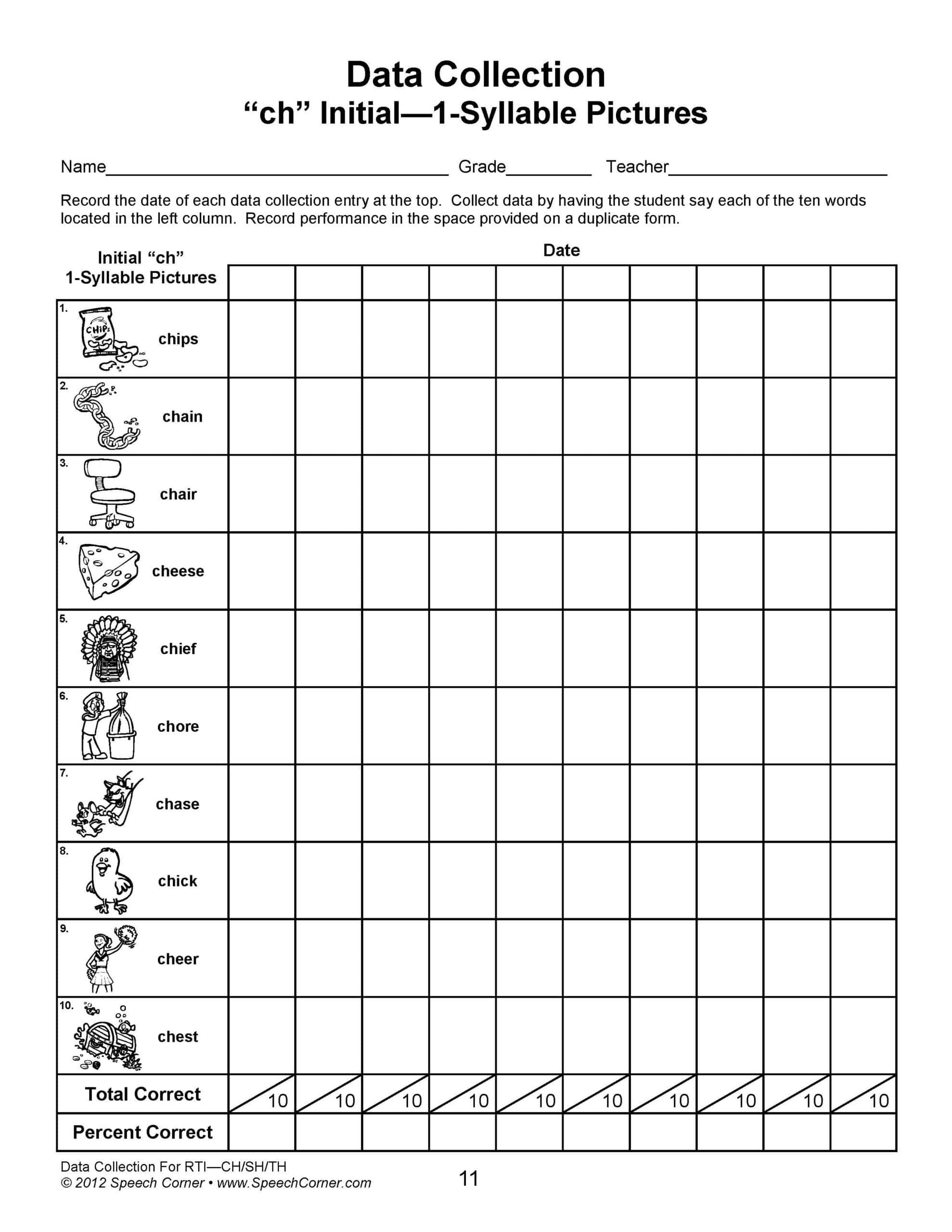 - Percentages are easy to calculate with 10 stimuli per page, saving you time and effort.