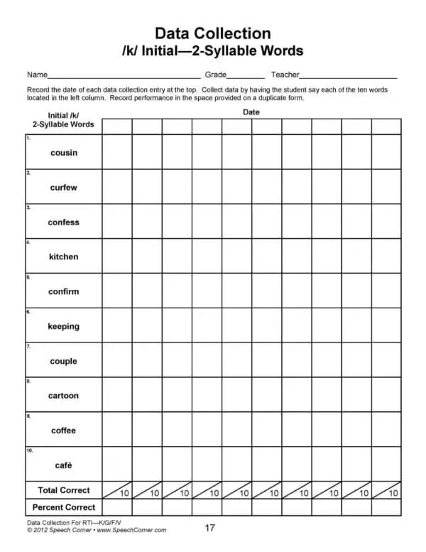 Clinicians love how these sheets streamline data collection, making it simple to transfer information into student files or folders. They’re ideal for gathering baseline data, monitoring progress, and demonstrating dismissal criteria. While perfect for quick data collection and parent progress updates, these sheets are versatile enough to double as homework assignments or tools for focused, drill-based therapy sessions.