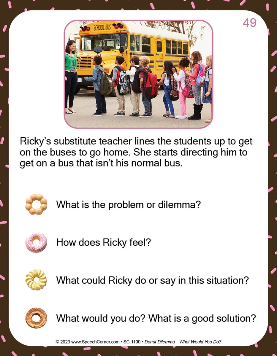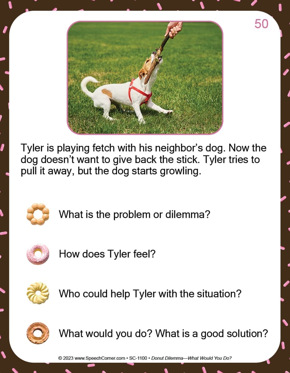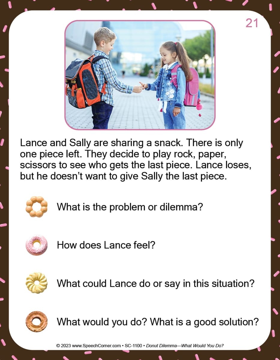 Welcome to Speech Corner’s Donut Dilemma—What Would You Do? 🍩 An innovative set of language development cards designed to help students practice exploring dilemmas, considering consequences, and finding the best solutions—all while stacking donuts in a fun, interactive game!