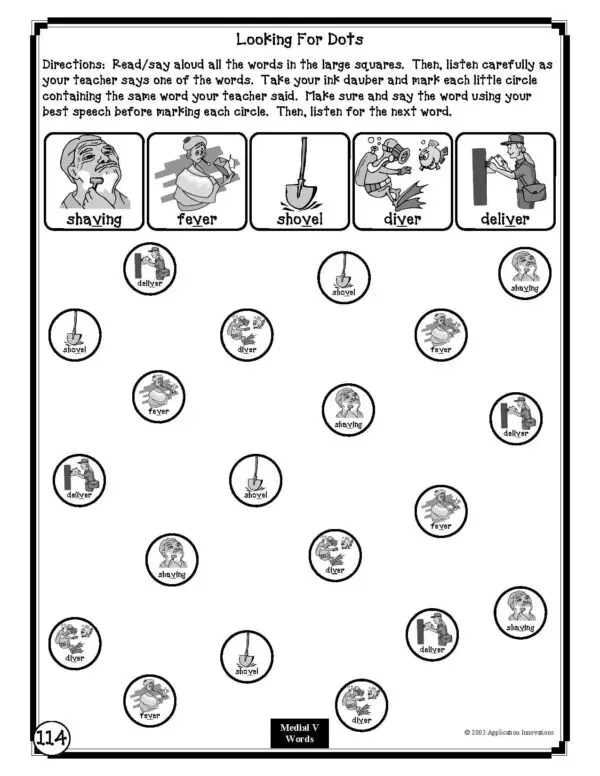 - Students follow the directions, dotting each spot as they practice their target sound—combining articulation practice with an interactive game!