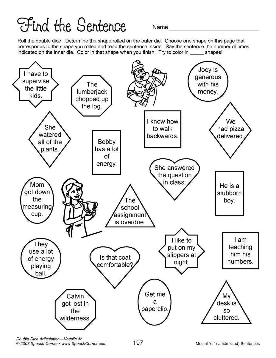 This workbook integrates an exciting and unique double dice system to captivate students while maximizing therapy outcomes. Here’s how it works: