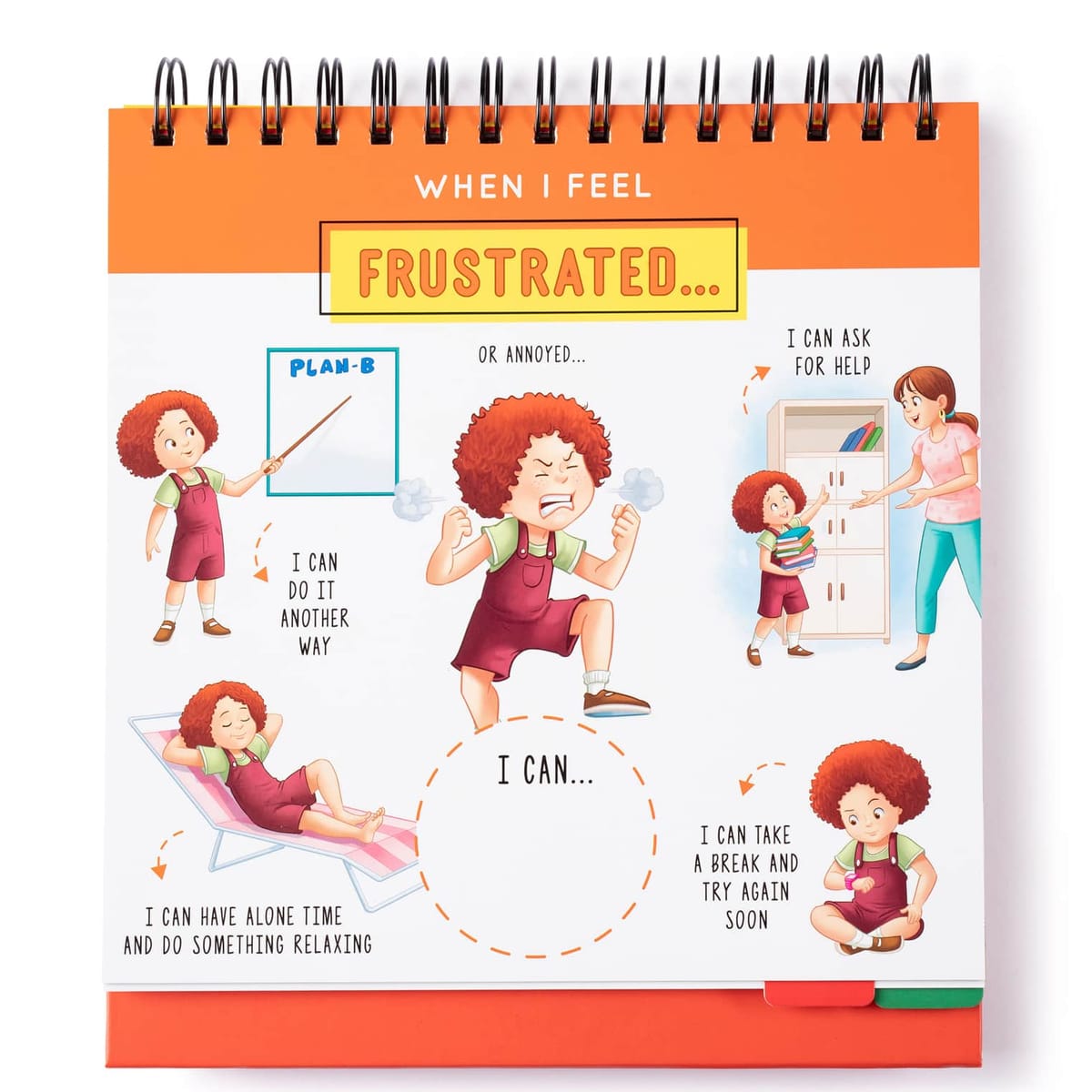 The Spark Emotions & Feelings Flipbook is a dynamic, spiral-bound resource designed to help children recognize, understand, and express emotions in a constructive way. Featuring 8 primary emotions and 48 engaging illustrations, this flipbook supports emotional growth through guided prompts and thought-provoking questions—making it an essential tool for both learning and therapy settings.