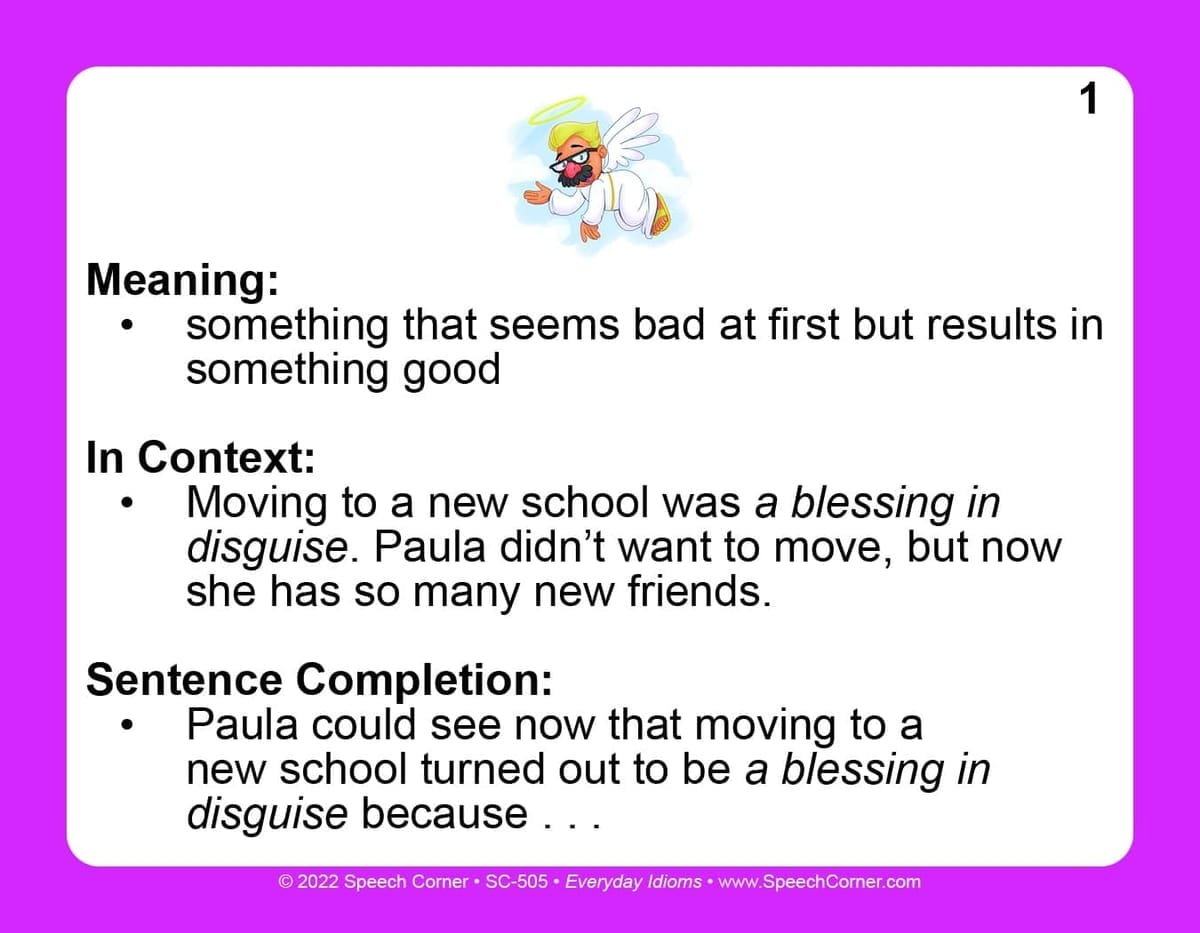 Bring idioms to life with this engaging set of 50 double-sided photo cards designed to boost students’ understanding of figurative language! Perfect for school-based speech-language pathologists, Everyday Idioms helps students decode, comprehend, and apply commonly used expressions through visual, contextual, and sentence-level support.