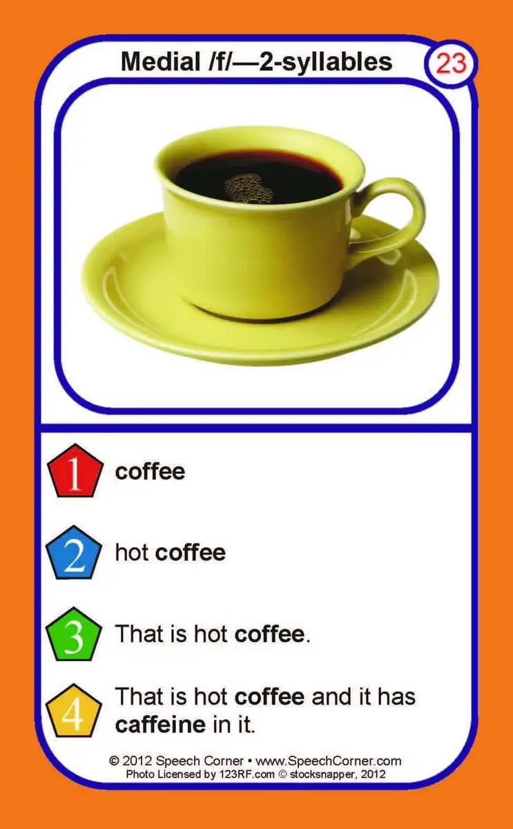 Motivate your students and maximize therapy time with the Double Dice F Articulation Card Deck—designed to provide high repetitions at every skill level while keeping practice fun and engaging. This targeted deck focuses on the /f/ sound in all word positions, with organized practice at the single word, phrase, sentence, and sound-loaded sentence levels.