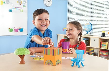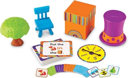 With Fox in the Box, children spin the spinner and place picture cards in different locations—in a tree, on a hat, over a chair, near a box, and more! Engaging rhymes and playful activities keep students motivated while building listening comprehension and spatial concept skills.