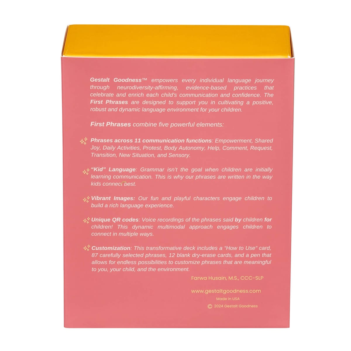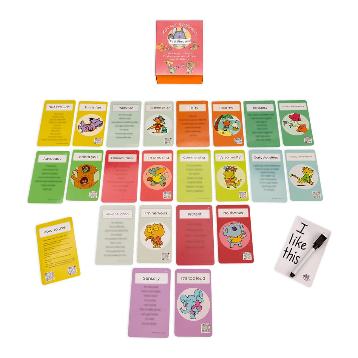 Gestalt Goodness: First Phrases supports early communicators—especially gestalt language processors—by providing meaningful, easy-to-use phrases that help children communicate wants, needs, emotions, and participation in daily routines. Use these first phrases to model language naturally, reduce frustration, and help kids move from repeated scripts to flexible, functional communication.