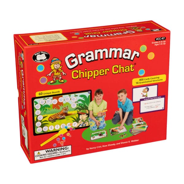 Embark on a journey into the grammar jungle with Grammar Chipper Chat, the exciting magnetic chip game designed to strengthen essential grammar skills. Perfect for addressing 16 grammatical structures commonly assessed in language evaluations (e.g., CELF and TOLD), this engaging tool combines fun with learning to make mastering grammar an adventure!