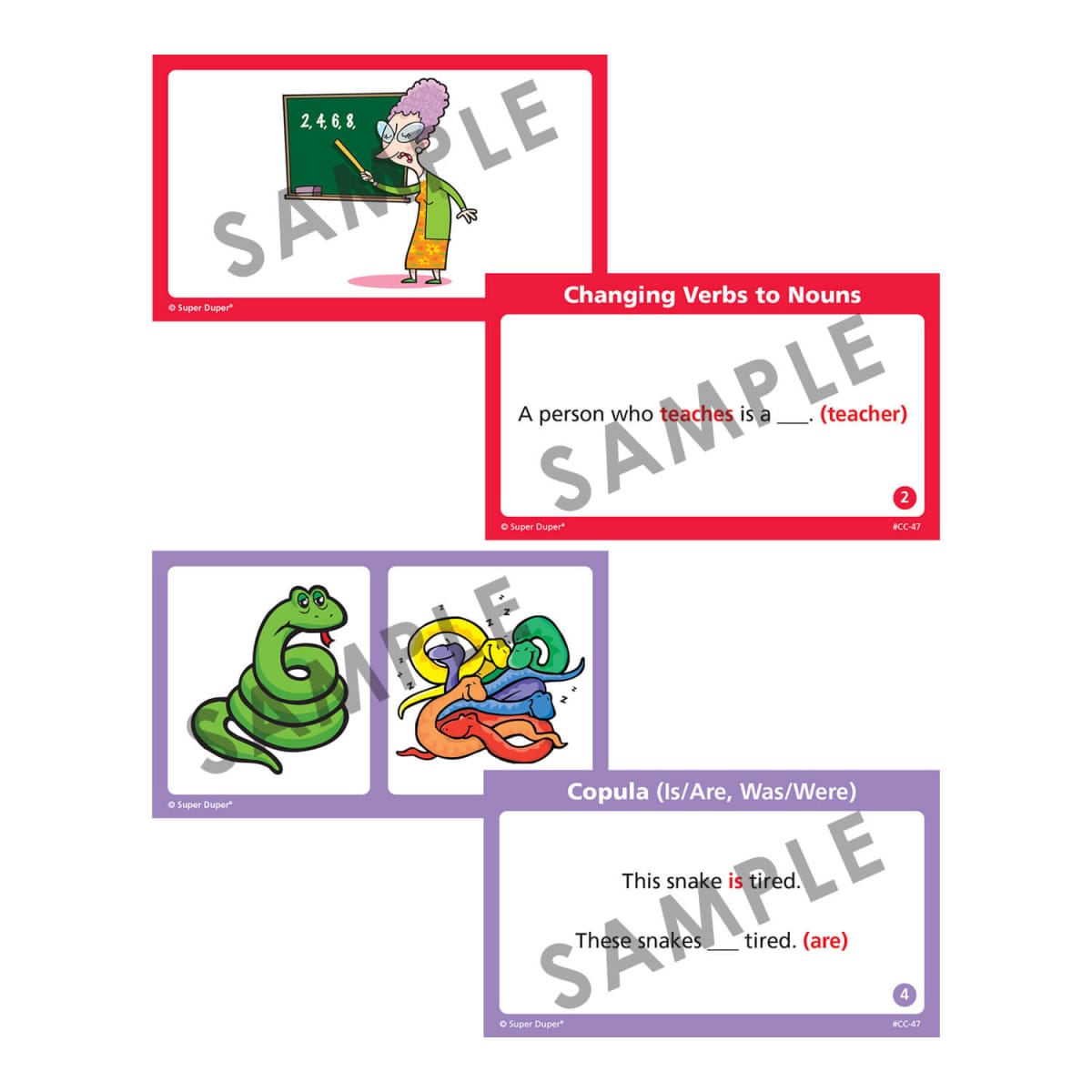 - Visual Learning Aids: 400 color-coded, double-sided question cards include sentence prompts and accompanying pictures, ensuring that visual cues aid comprehension and sentence construction.