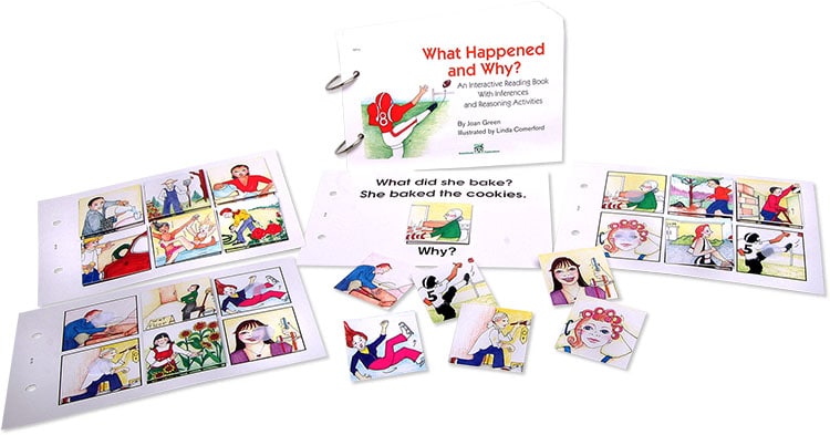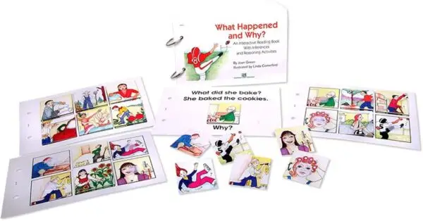 In this book, students are asked to make inferences about what is happening in the wonderful pictures drawn by Linda Comerford. Each sentence page poses a what or where question and then answers it. An example is: “What did she bake?” “She baked the cookies.” Each page ends with the question “why?” If a student truly understands what’s happened in each picture, he can give an appropriate answer to the question “why?”