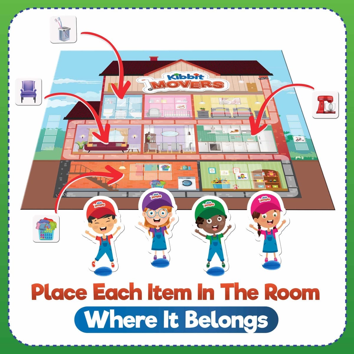 All aboard for a categorization adventure! Kibbit Movers is a captivating board game designed to strengthen vocabulary, critical thinking, and categorization skills. Players race their pawns around the colorful game board while sorting and listing items by place, making learning both interactive and fun.