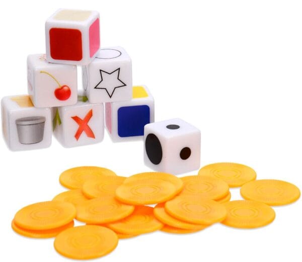 ✔️ 7 dice (representing size, color, shape, and more)