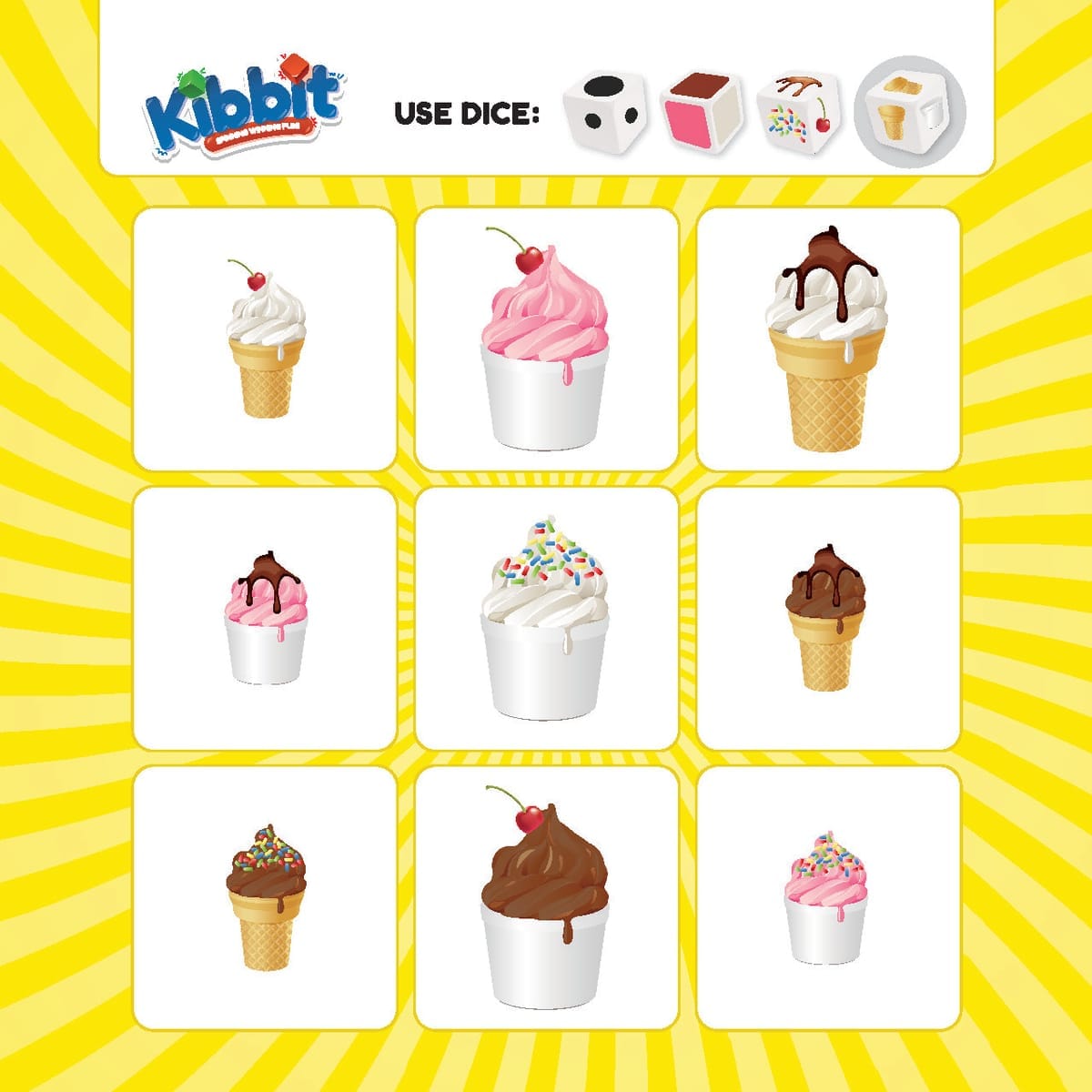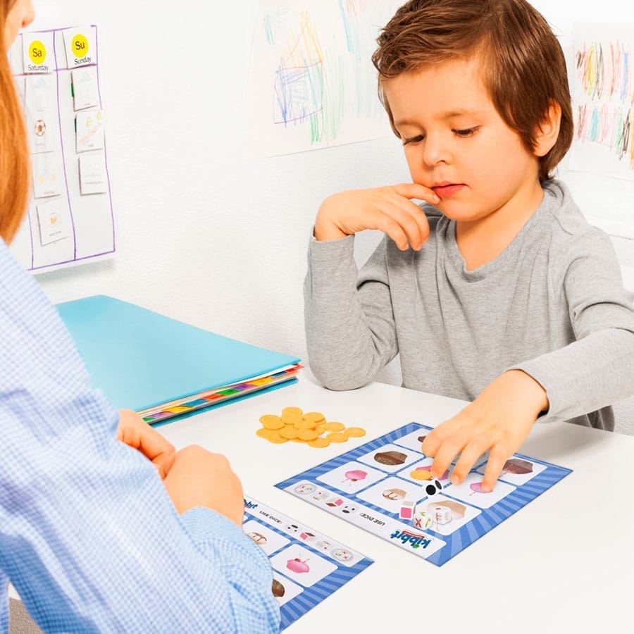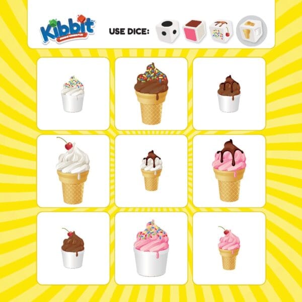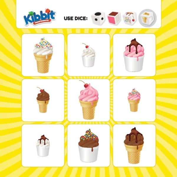 Add excitement to language learning with Kibbit, a fresh take on the classic Bingo game. Instead of numbers, players use dice that represent descriptive elements—such as size, color, and shape—to match pictures on their boards. Every roll challenges students to listen, describe, and identify objects with accuracy, making Kibbit both educational and fun.