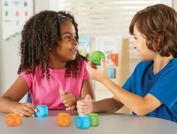 ✔️ Set of 6 foam cubes (color-coded: Ice Breakers, Social Skills, Feelings/Emotions)