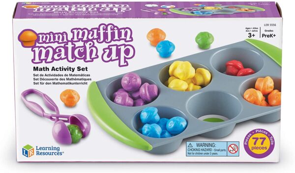 Build a multitude of skills with delightful mini-muffin counters. Swap in the sorting-circle inserts to practice colors, matching, sorting, counting, and early math—then roll the color and number dice to turn learning into a game. The included Squeezy Tweezers boost fine-motor control while keeping kids engaged.