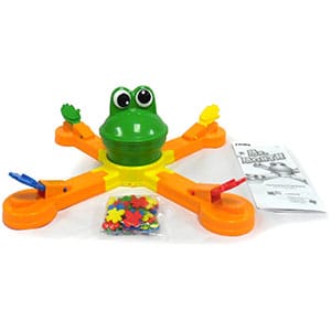 Kids and adults alike will love flicking colorful flies into the mouth of Mr. Mouth, the hungry, spinning frog. But watch out—this hyper hopper won’t stay still! His funny frog head opens, closes, and spins, making timing and aim key to winning the game. The first player to catapult all of their flies into Mr. Mouth’s mouth is the winner!