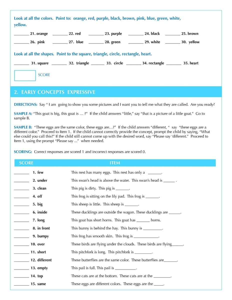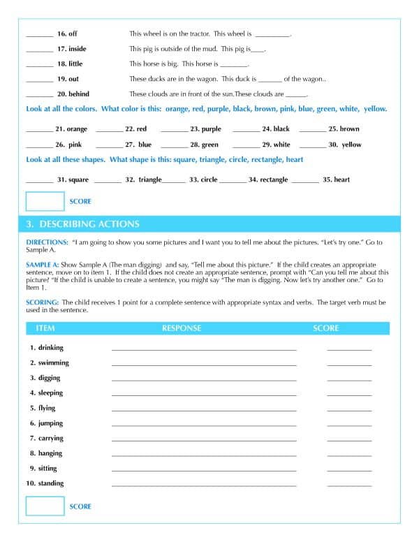 Book 2: Includes 4 subtests — Describing Actions, Answering Questions, Following Directions, and Sequencing Events