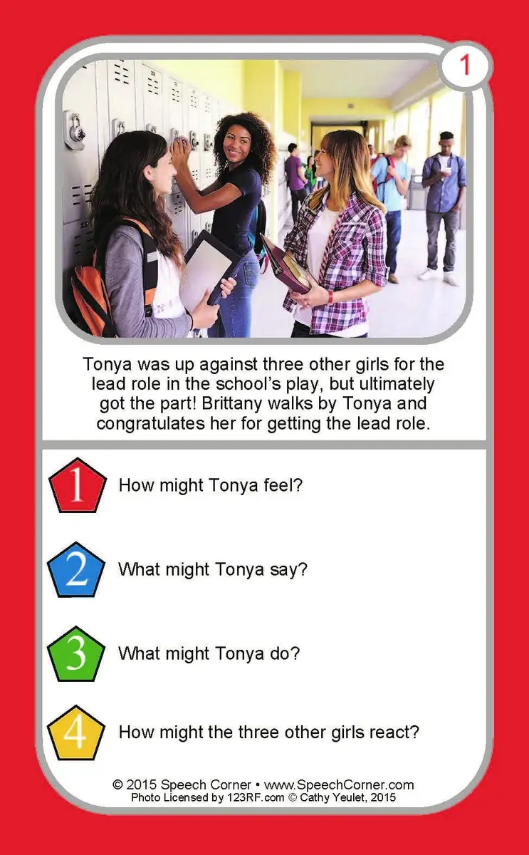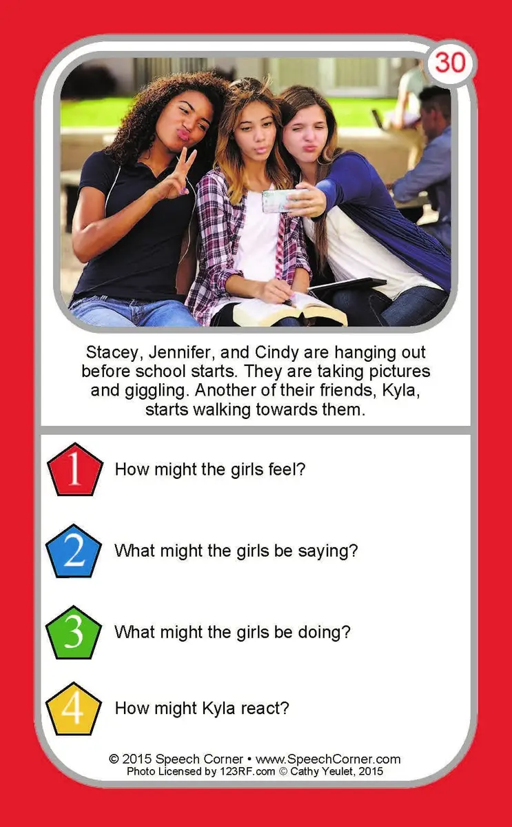 With 54 real-life scenarios and 216 follow-up questions, students practice interpreting emotions, predicting reactions, and recognizing that there can be more than one valid perspective.