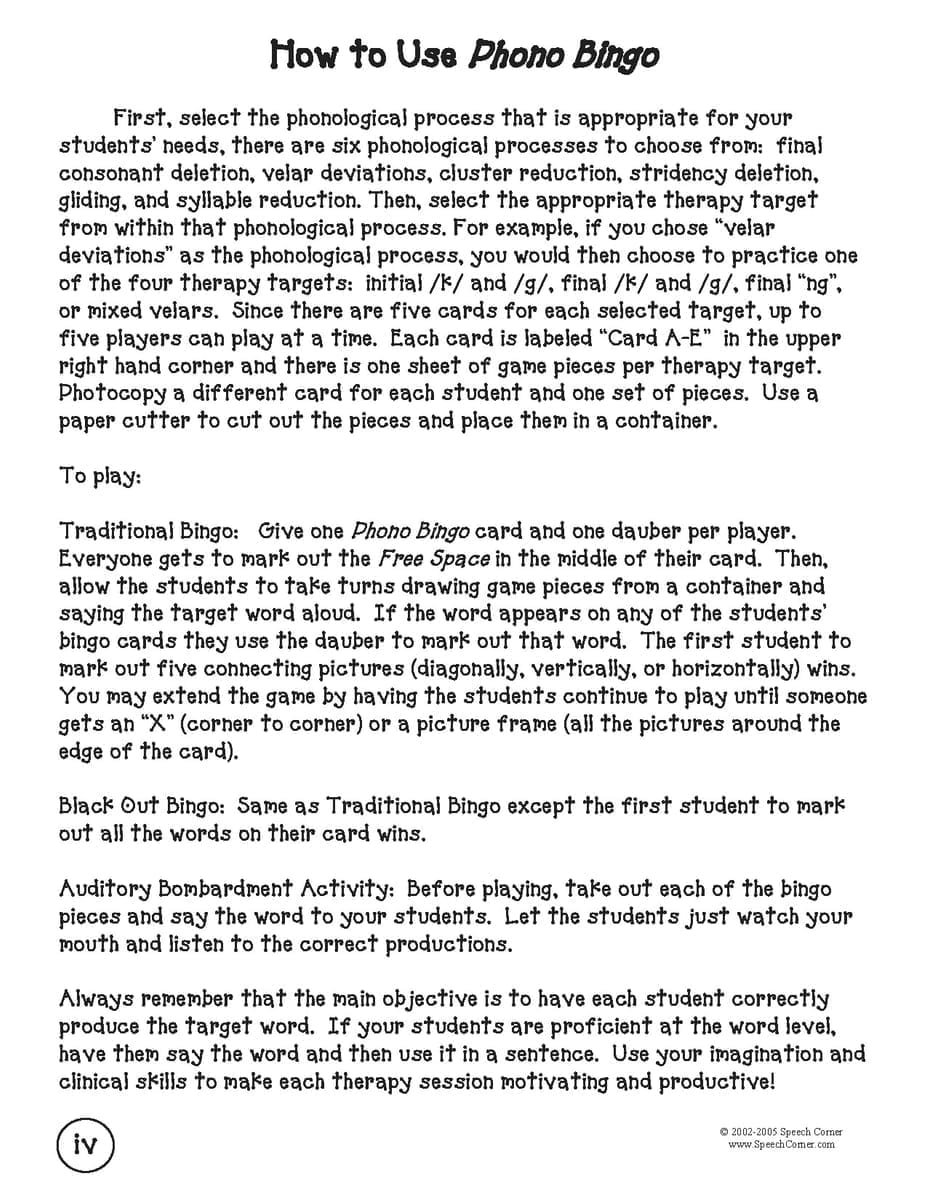 This 162-page reproducible workbook includes 125 unique game boards tailored to target specific phonemes across six common phonological processes, making therapy both effective and entertaining: