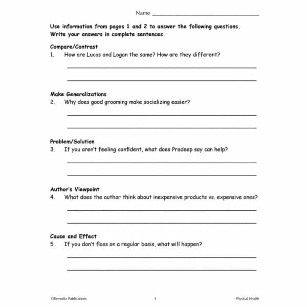 From nutrition and exercise to sleep, grooming, and avoiding risky behaviors, these high-interest lessons address real questions students ask every day: