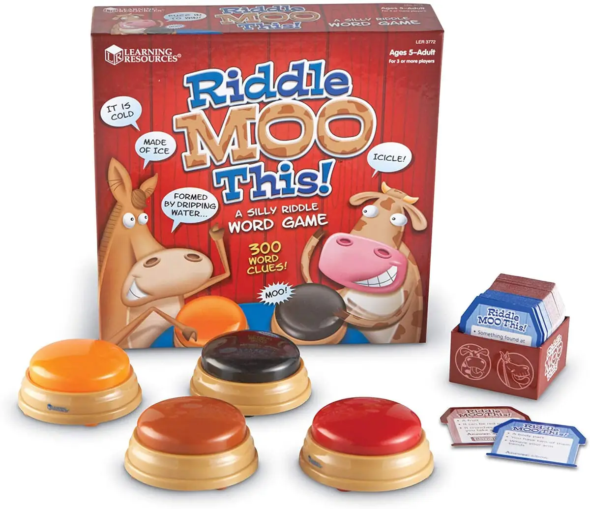 Get ready for a laugh-filled way to build vocabulary and reasoning skills! Students listen to silly riddles, think fast, and buzz in with their answers. With two levels of play and critical-thinking “Barnteaser” cards, this game keeps learners engaged while boosting language skills.