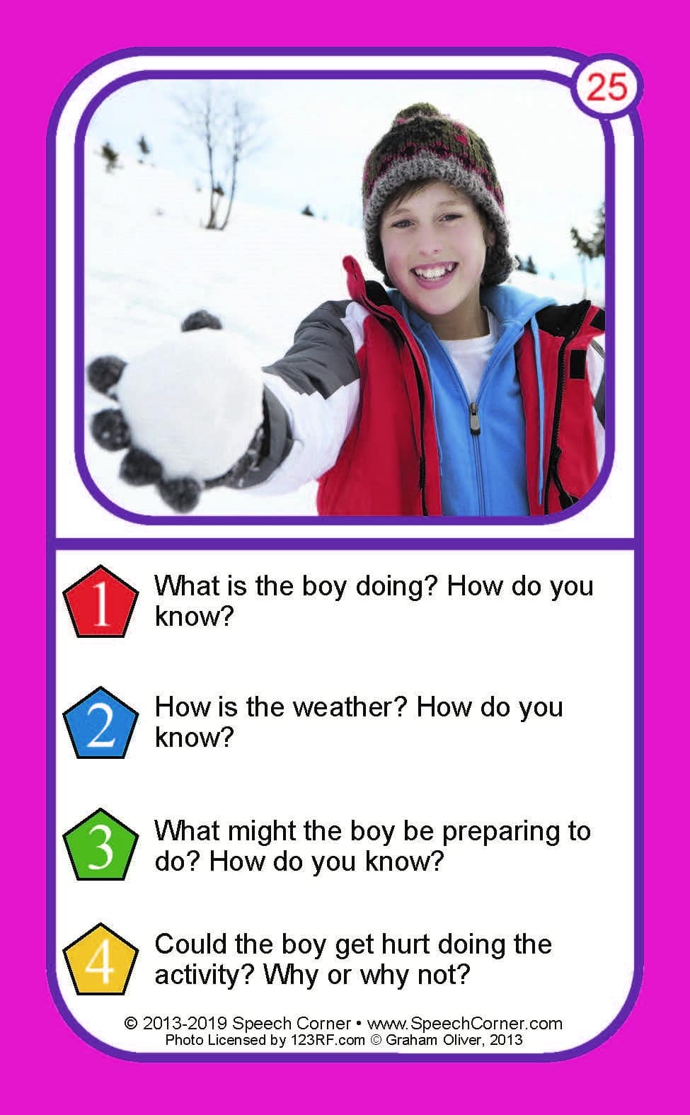 ✔️ 54 large 3” x 5” playing cards (each with 1 photo + 4 inferential questions)
