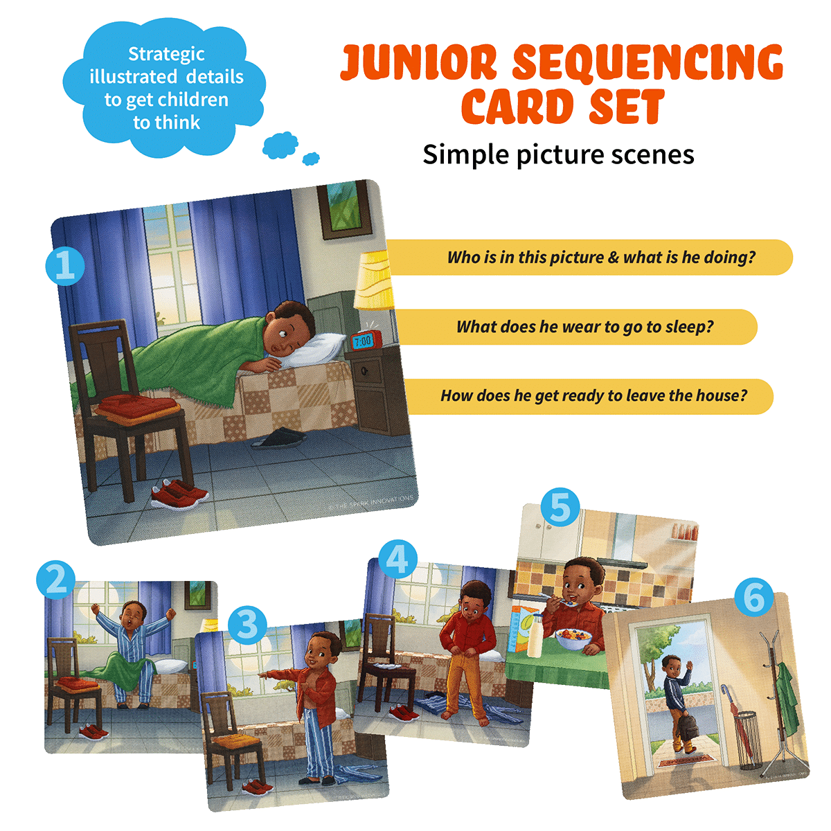 The Junior Spark Sequence Cards Set #2 are the perfect tool for introducing and strengthening basic sequencing skills in young learners. With vivid illustrations and flexible usage options, these cards foster critical thinking, storytelling, and comprehension in a fun, accessible way.