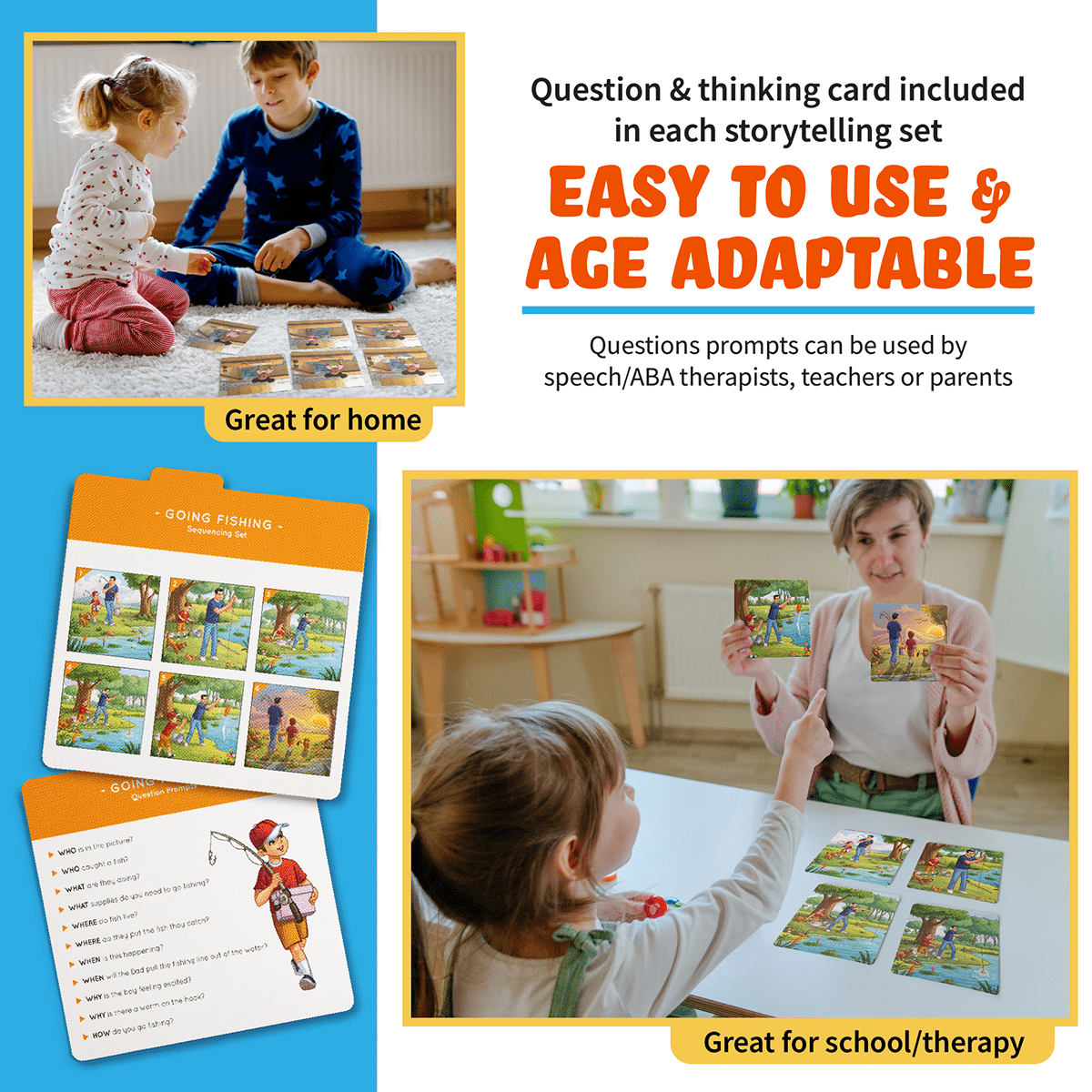 Easily modify the number of cards per story to support 3-step, 4-step, or full-sequence activities. Ideal for children at different stages of language and cognitive development. -