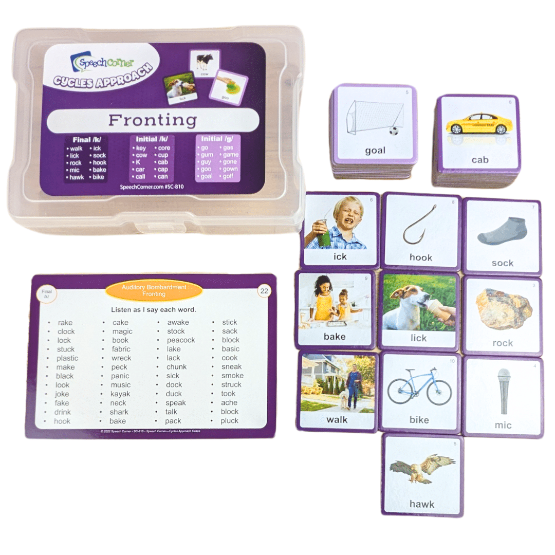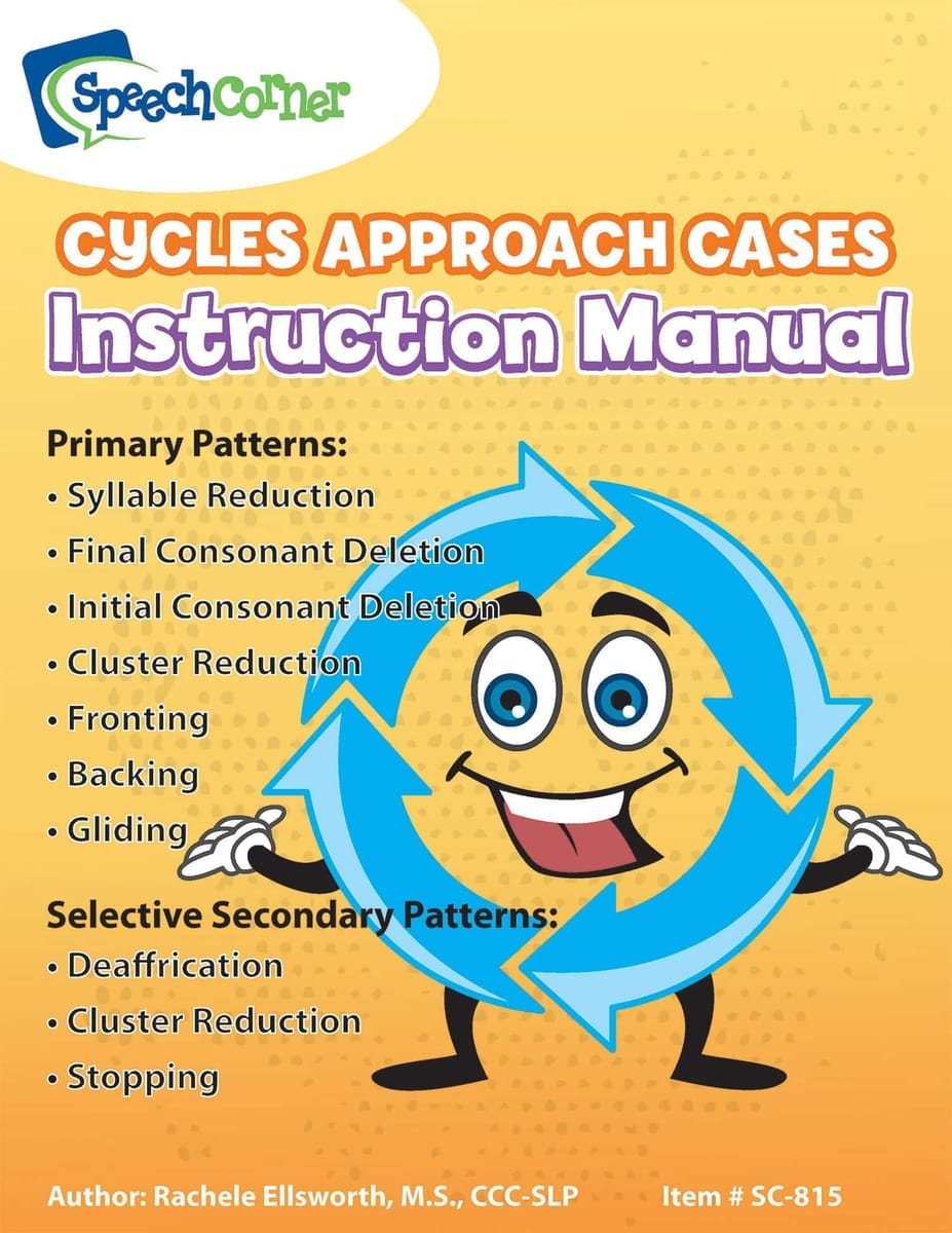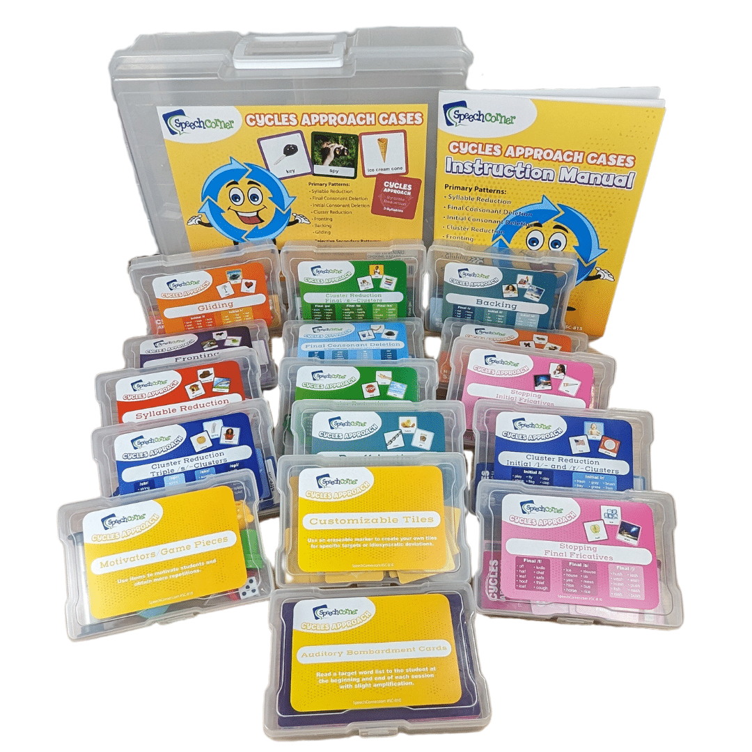 The Speech Corner—Cycles Approach Cases is a complete intervention system designed for speech-language pathologists working with children who have severe to profound expressive phonological disorders. This robust resource supports the implementation of the evidence-based Cycles Approach with hands-on materials and structured guidance to drive meaningful gains in speech intelligibility.