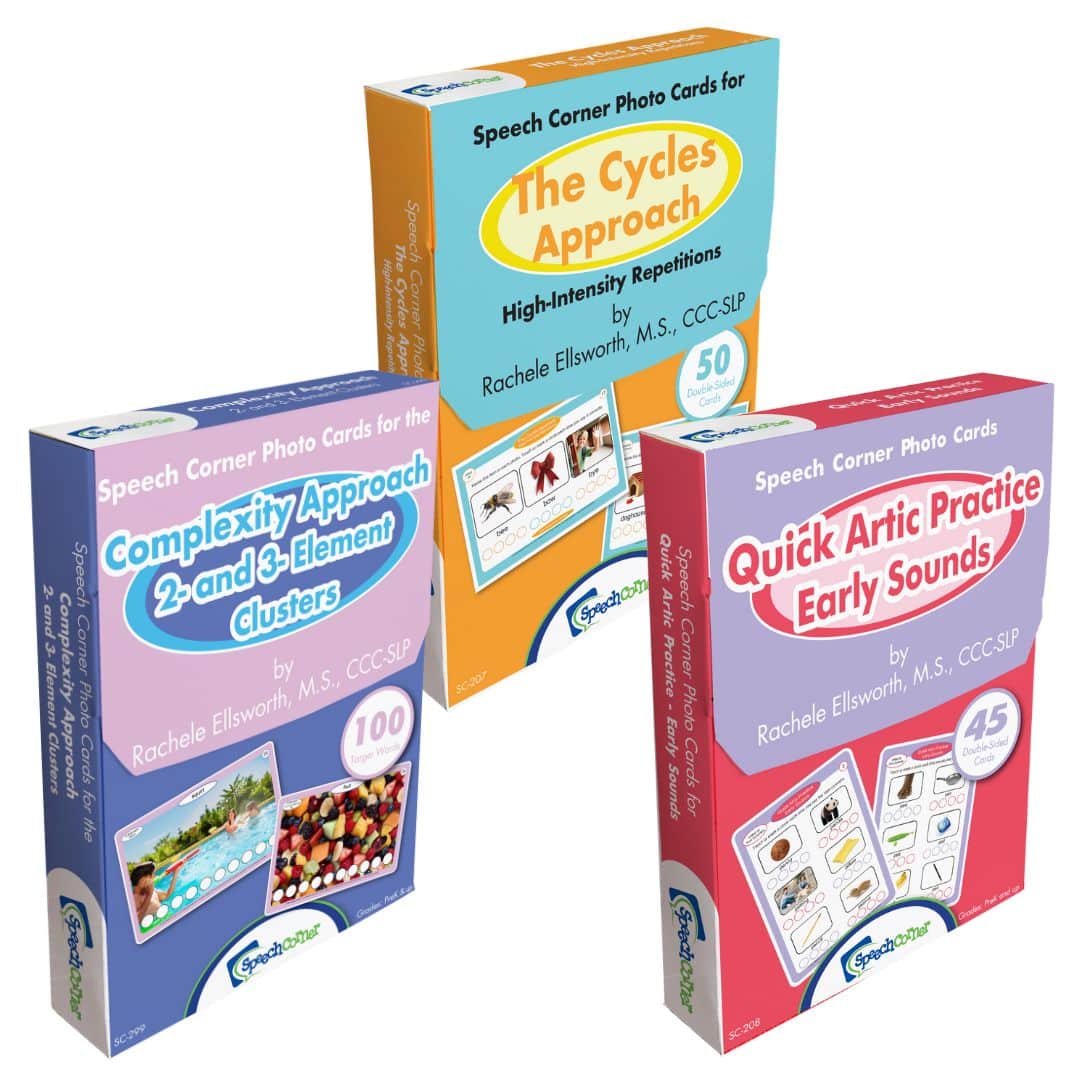 The Speech Corner Photo Card Bundle- Speech Sounds Intervention brings together three research-informed decks designed to support a variety of therapy approaches for students with speech sound disorders. Whether you’re targeting early-developing sounds, phonological processes, or complex clusters, this bundle equips you with practical tools to boost progress and simplify session planning.