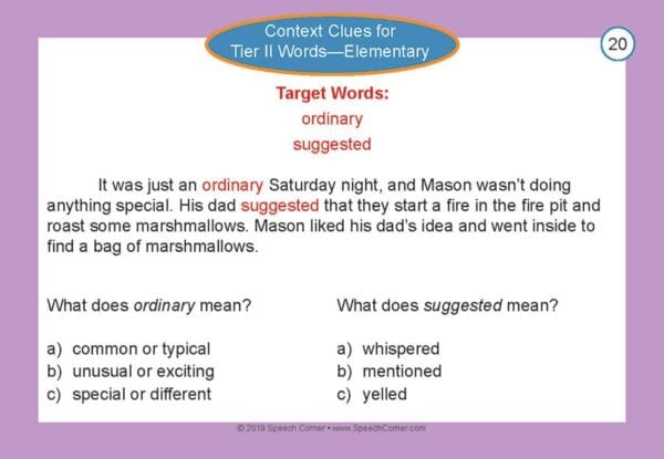 Make Tier II vocabulary instruction meaningful and engaging with Speech Corner Photo Cards – Context Clues for Tier II Words (Elementary). These vibrant, photographic cards embed high-utility academic words into short, age-appropriate passages designed to strengthen inferencing, word learning, and comprehension.