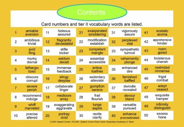 Looking to expand the expressive and receptive vocabulary of the teens on your caseload? Speech Corner Photo Cards – Expanding Vocabulary in Teens is your go-to resource for targeting Tier II words in a meaningful, research-backed format.