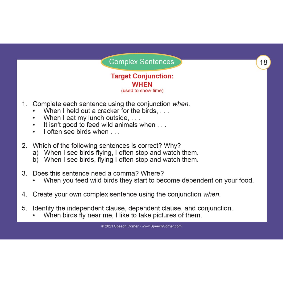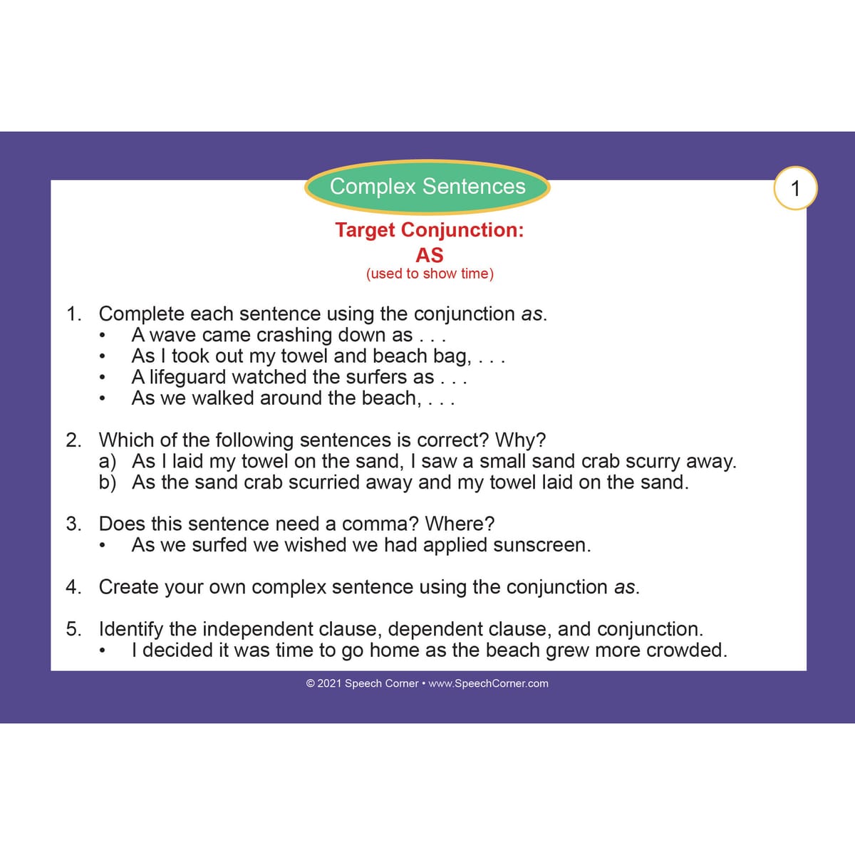 This comprehensive set of grammar-focused cards helps students understand and produce complex sentences using 12 essential subordinating conjunctions: